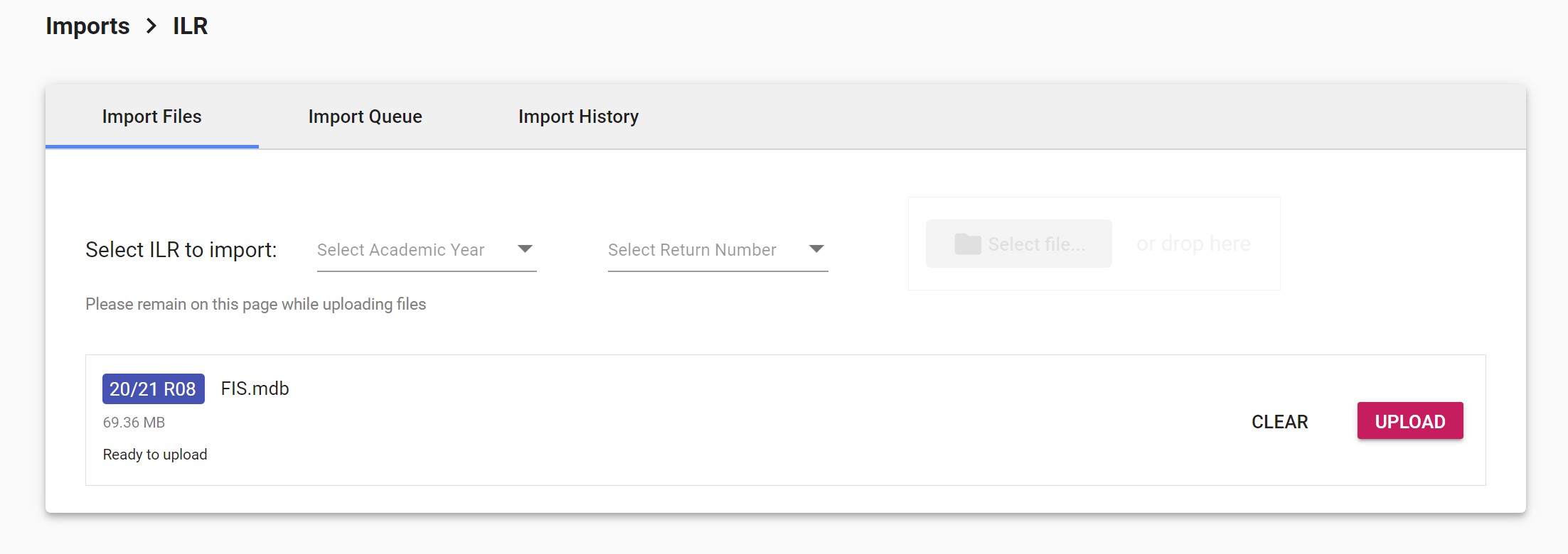 To import ILR data you must be assigned to the Administrator or Import Manager role.