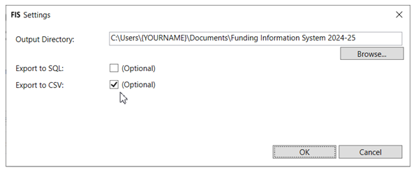 Using the FIS tool select your ILR xml file and export an MDB or, from 24/25 onwards, a CSV.zip file. For example, in FIS settings tick the 'Export to CSV' option on the FIS settings screen prior to export to produce the CSV zip file.