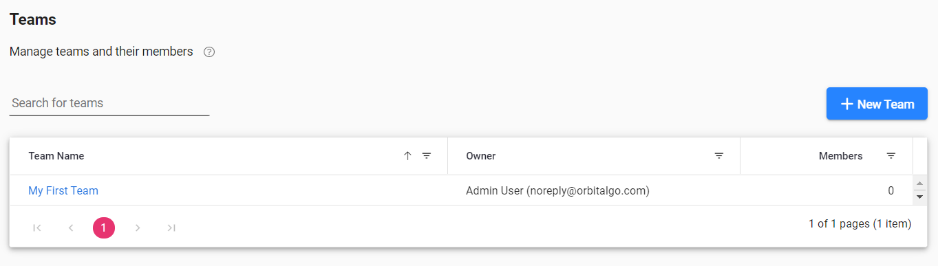 Team Management is available from the Settings menu in the left hand side panel. Select the Teams section then: