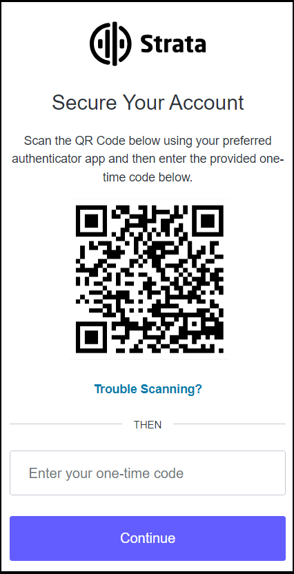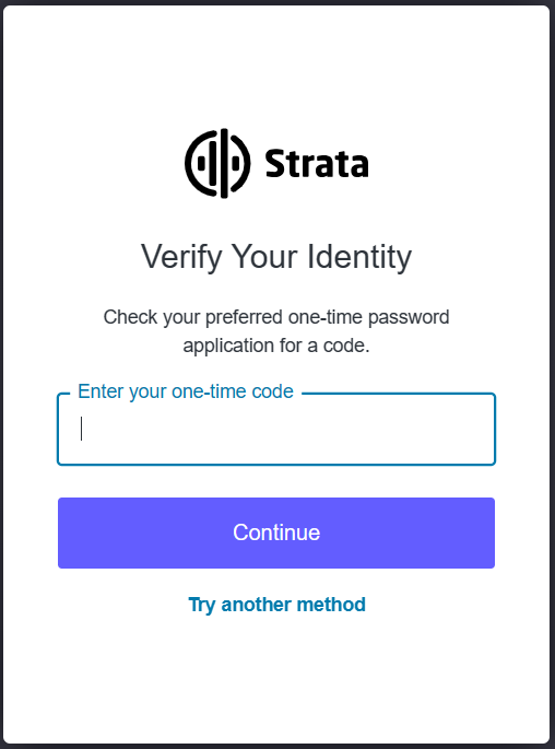 Afterwards, when they next log in to Strata, the user can simply check the authenticator app for the current one-time code and enter at the prompt: