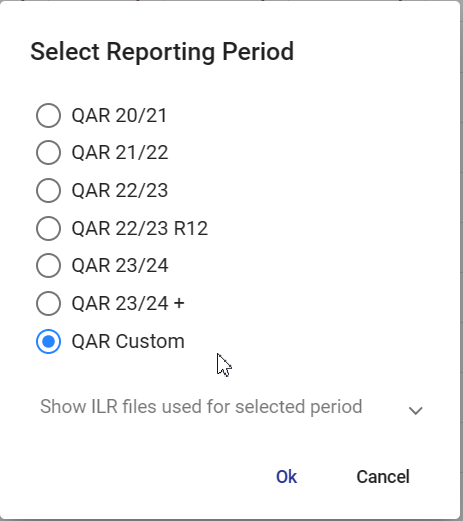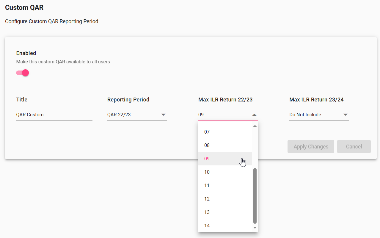 As an example let's create a new Custom QAR for QAR period 22/23 and include, as the final ILR, the R09 of 22/23. Our aim is then to have that to compare with our current live QAR which is a 23/24 QAR and we have just imported our R09 ILR of 23/24.